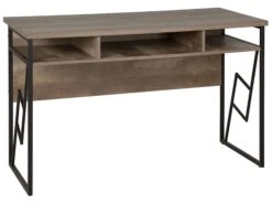 Perfectly combined modern and industrial design make this desk a stylish addition to any living area or home office. Designed with 3 deep compartments it offers ample space for all your documents and personal belongings. Featuring a dark wood laminate finish, it makes a suitable addition to urban and rustic inspired home decor.