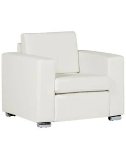 Clean and simple lines make this leather chair the ideal addition to any modern or traditional interior. All seating surfaces and cushions are made of top grade, white split leather. The remainder is made of high-quality synthetic leather. Spacious seat padded with high-density foam & padded armrests add extra comfort. Constructed of a wooden frame for strong support and long-time use. Perfect for entertaining or relaxing while offering a stylish design in your home.